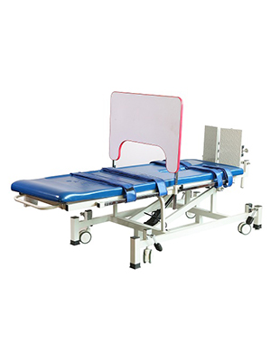 電動(dòng)起立床是幫助一些偏癱,截癱或者長期臥床有意識(shí)障礙或者昏迷,植物狀態(tài)的患者進(jìn)行訓(xùn)練的一個(gè)治療方法。首先將患者用固定帶固定在床面上,可綁在病人的胸部,髖部,膝部,然后用調(diào)節(jié)控制按鈕,將患者由水平位調(diào)整到直立位,在升高床的角度,通過這樣的訓(xùn)練,能夠矯正患者的體位性積水壓,預(yù)防患者長期臥床的肺部泌尿系感染,預(yù)防骨質(zhì)疏松等多種并發(fā)癥,此外,患者通過直接床的站立,可以雙下肢提高肌肉的張力,直立床上還可以配置相應(yīng)的平板,讓患者在平板上做一些簡單的作業(yè)活動(dòng),和手指功能的效正,隨著患者的直立能力的提高 ,可以慢慢把固定帶取消,讓患都膝蓋腿部的控制訓(xùn)練。